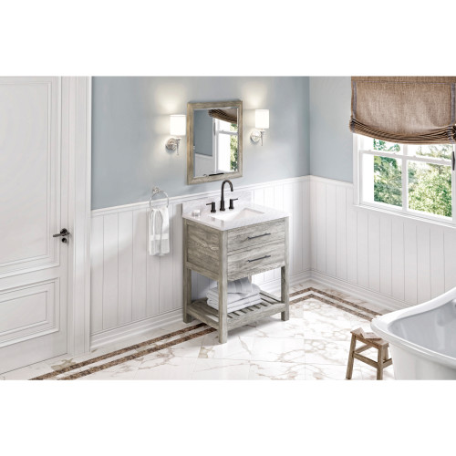 30" White Cade Vanity, Black Granite Vanity Top, undermount rectangle bowl | VKITCAD30WHBGR | Jeffrey Alexander